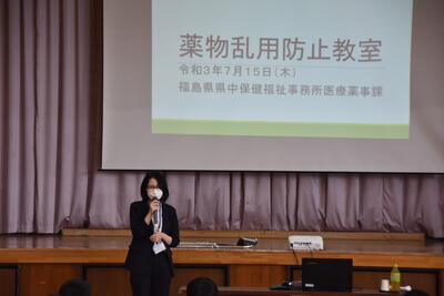 県中保健福祉事務所より医事薬事チーム職員の方を講師としてお招きし、『違法薬物の現状』、『違法薬物における身体の影響』などについて講話をいただきました。