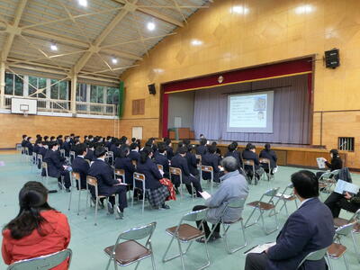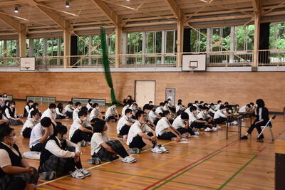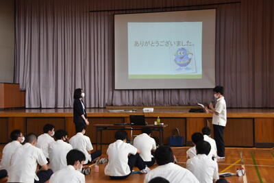 7月15日(木)6校時、総合的な探究の時間を活用し、「令和3年度薬物乱用防止教室」が本校体育館にて開催されました。