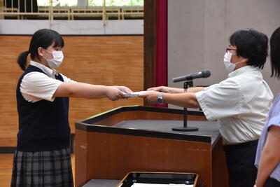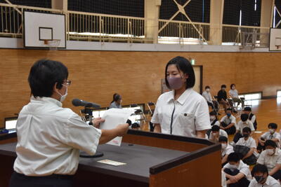 また、終業式に先立ち賞状伝達式も行われ、下記の生徒に賞状が伝達されました。