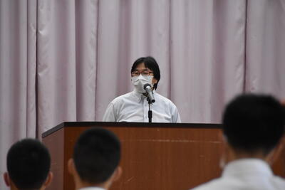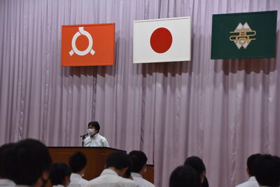 夏目校長からは、スポーツ大会の振り返りとともに、「夏を制する者は受験を制す。」といった言葉が述べられ、次年度須賀川創英館高の生徒として適切な言動がとれるよう、講話がありました。