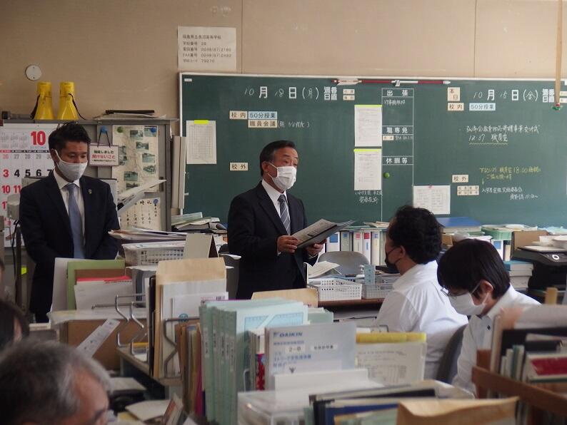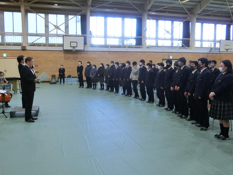 夏目校長からは、「世の中がコロナで混乱している。マスク着用や会食の制限など、一度決まったことは必ず守ることが大切である。」といった主旨の話が冒頭に述べられ、3年生は長高最後の卒業生として進路活動に取り組み、1,2年生は須賀川高校との統合に向けて自分というものをしっかり持って勉学に励むよう、講話がありました。