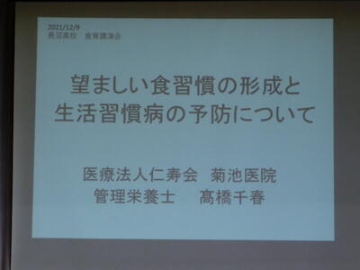 2021年12月10日 15時49分12月9日(木)6校時「総合的な探究の時間」を活用して、全校生を対象とした食育講演会を実施しました。