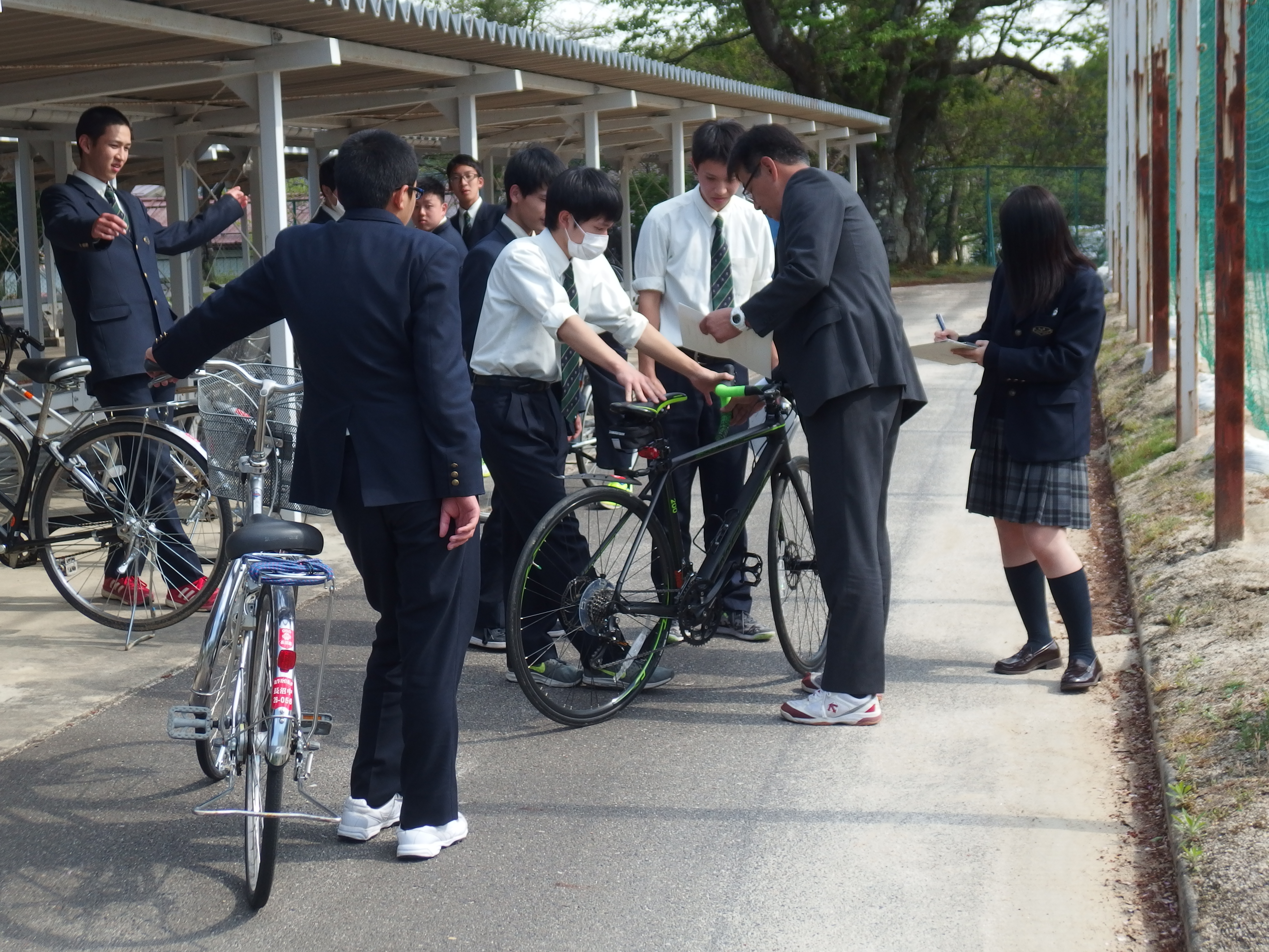 5月9日(木)避難訓練の後、放課後に自転車通学生の車両点検も実施しました。自分の安全を守る第一歩として、日頃から気を配るとともに、時間に余裕を持った登下校を心がけ、交通ルールを守って自転車を利用しましょう。